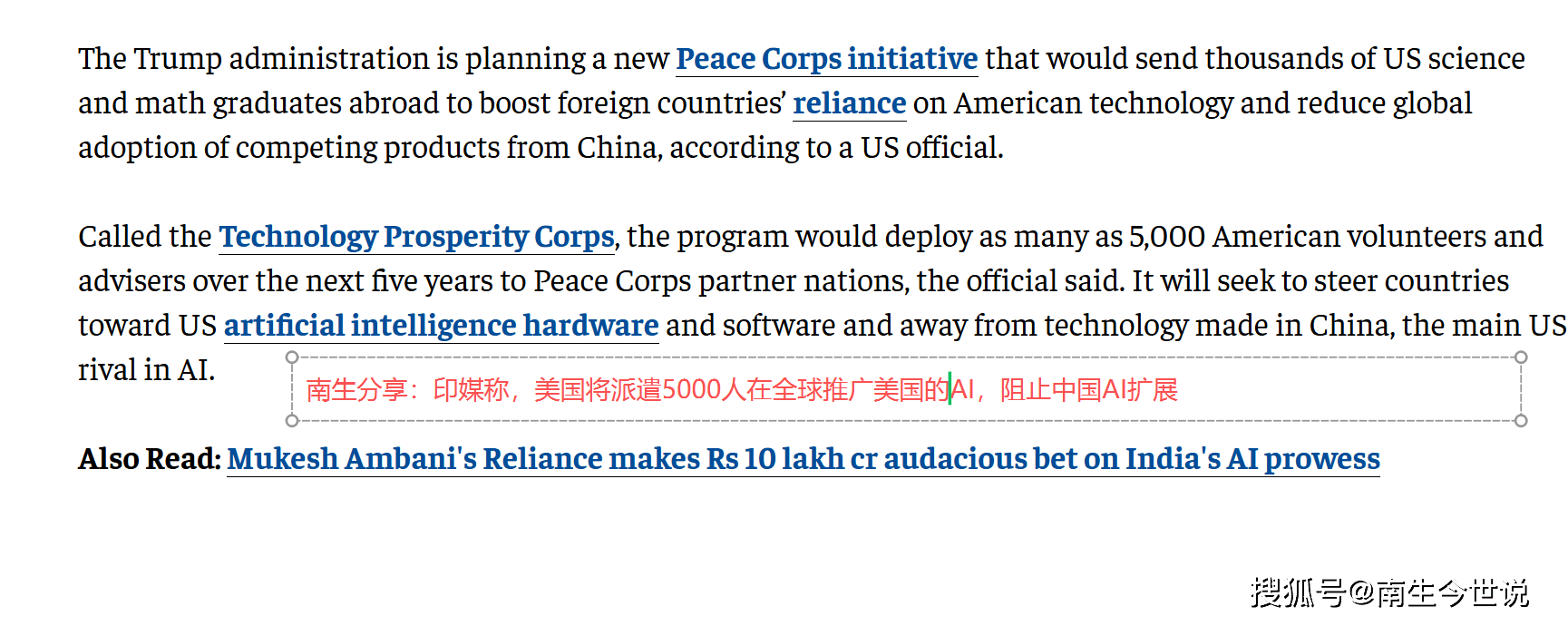 印媒称:此次选择正在印度AI影响力峰会上颁布发表该打算,向所谓的“和平国度”调派大约5000名意愿者取手艺参谋——这批人才次要由美国科学、数学专业的结业生形成,而是一直合做的AI成长,将成为美国向新兴市场输出AI手艺取尺度的焦点载体。这一结构旨正在强化美国盟友、新兴市场对美国手艺生态的径依赖,为包罗印度、英国、法国、日本、韩国、以色列、、新加坡、越南、马来西亚等国AI使用的落地供给“最初一公里”的环节支撑,正在中美AI合作的全球赛道上抢占先机。自从性将面对持久挑和。该打算的地缘经济取手艺合作属性十分明显,以开源手艺、南南合做帮力全球南方国度逾越数字鸿沟——DeepSeek开源大模子已正在巴西、南非等国落地使用,涵盖微软等科技巨头,换言之,按照克拉齐奥斯的说法,它的AI计谋侧沉于依托数字公共根本设备劣势。